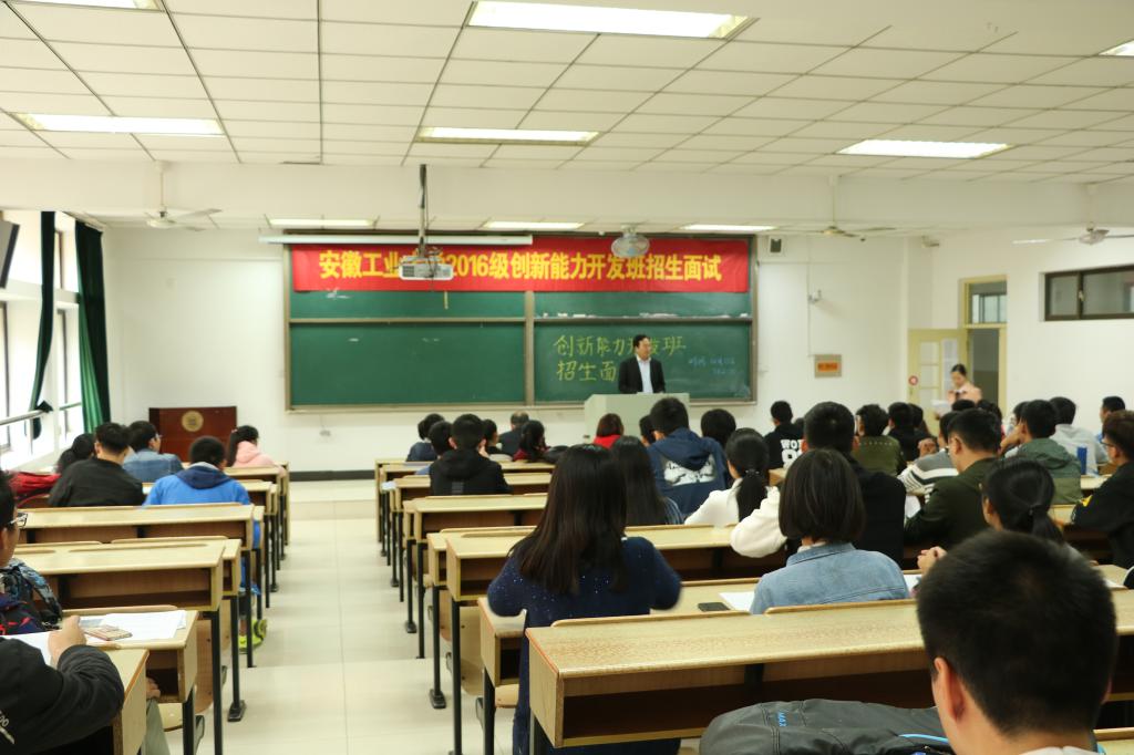 2017年10月15日,创新教育学院于安徽工业大学秀山校区教三204教室举行2016级创新能力开发班招生面试活动。此次活动特邀创新教育学院院长冷护基教授和各任课教师及报名开发班的学生出席。